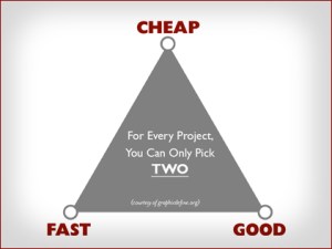 The answer isn’t always what they want to hear, sadly, there is no such beast! As always, the classic designers triangle applies here: Good, Fast and Cheap. Pick two…..